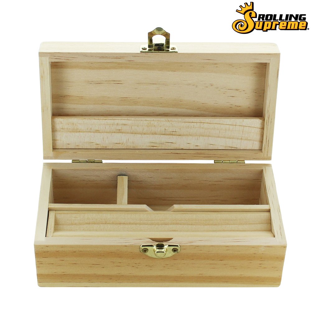 Boîte de rangement Rolling Supreme en bois, alliant élégance naturelle et fonctionnalité. Conçue pour les amateurs de roulage, elle est équipée d’un crochet de fermeture en laiton, apportant une touche raffinée et une excellente tenue.